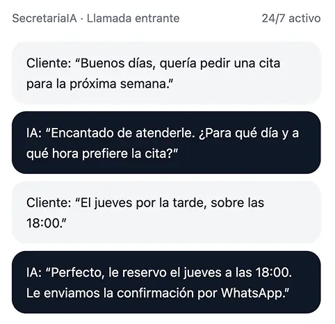 No se trata de sustituir personas, sino de asegurarte de que tu negocio está siempre atendido, sin depender de horarios ni picos de trabajo.